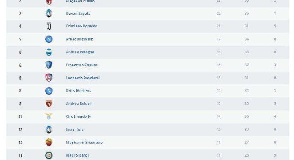 La Serie A ha perso il capocannoniere dello scorso campionato volato in Premier League per vestire la maglia del Manchester United. CLASSIFICA MARCATORI SERIE A 202021. Cristiano Ronaldo Juventus 29 gol.
